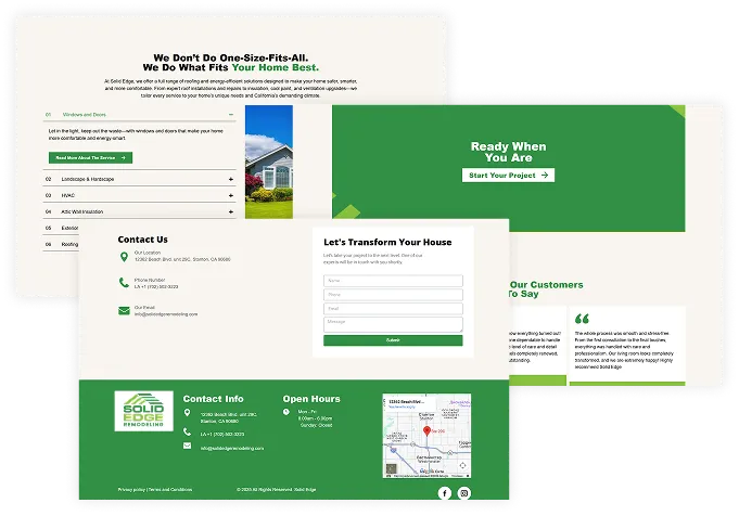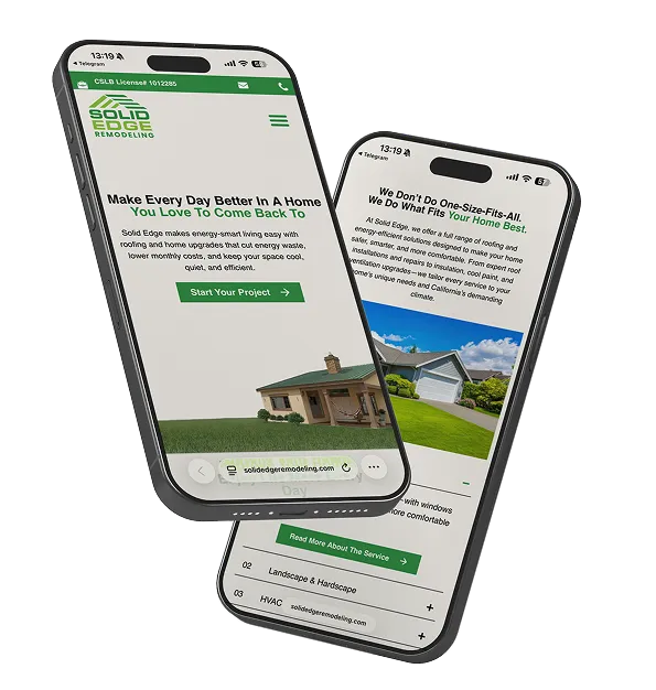 A strategic website redesign that modernised the brand, clarified its services, and strengthened homeowner trust. The new structure was built to position SOLID EDGE Remodeling as a credible, high-end contractor while actively driving inquiries and consistent lead growth.